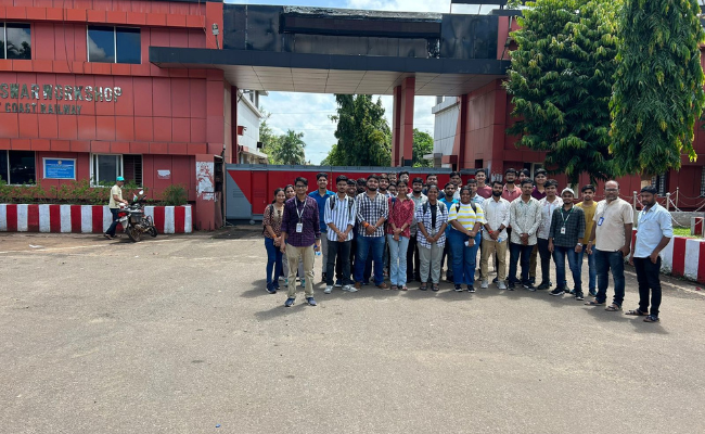 KIIT School of Mechanical Engineering organized an industrial visit to the Carriage Repair Workshop at Mancheswar under Indian Railways on31.08.2024 . Around 40 students participated in the visit, where they explored various facilities and manufacturing setups, including the hydraulic shearing facility, the Wheel Shop, painting activities, carriage body repairing, the trimming shop, a bio-gas plant, the air-brake section, alternator section, light shop, bogie repair workshop, fitting line, gas welding and cutting areas, and overhead crane operations. The students were accompanied by Dr. Abhilas Swain, Dr. Amlan Panda, and Ms. Sasmita Jena.